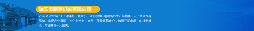 瑞安市皓宇機械有限公司是瑞安一家私營責任有限公司,注冊資金200萬,員工40余人,是具有獨立法人地位,專業(yè)生產(chǎn)定做各種非標準涂布機、復(fù)合機、印刷機、分切機、壓膜機等機械設(shè)備的制造廠。公司的機器主要用于生產(chǎn)保護膜、膠帶、雙面膠、不干膠、相紙、油畫布、汽車防爆膜、熱轉(zhuǎn)印、燙金膜、離型膜、離型紙、軟包裝印刷、軟包裝復(fù)合、軟包裝分切等各種產(chǎn)品...  [詳細]